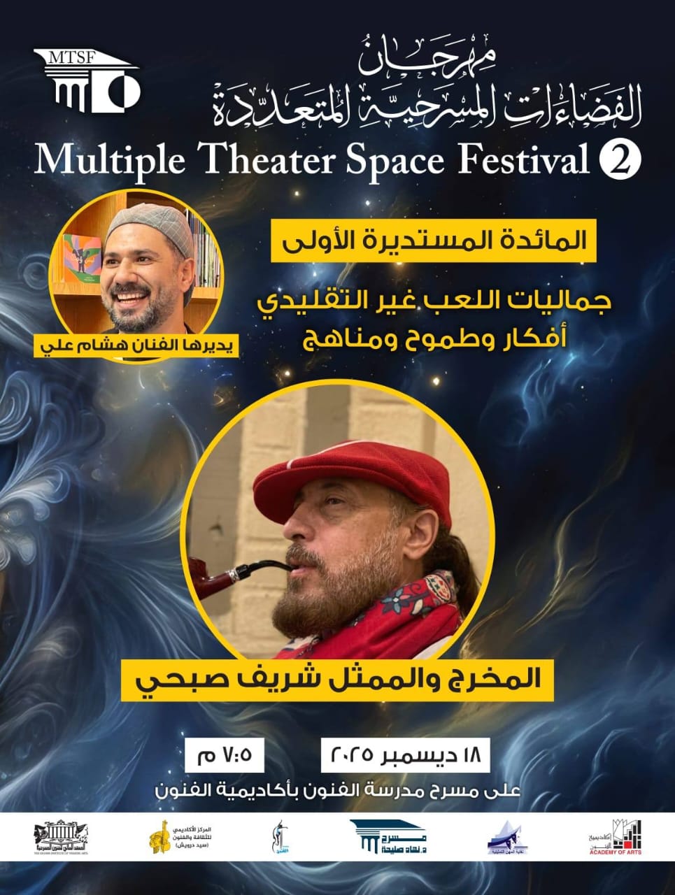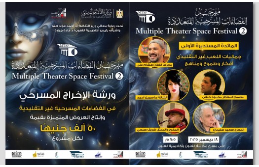 في إطار استعدادات «مهرجان الفضاءات المسرحية المتعددة» للدورة الثانية دورة الفنان «محمد صبحي» والتي من المقرر أن تقام عروضها في شهر أبريل 2026 تحت رعاية معالي وزير الثقافة الأستاذ الدكتور أحمد فؤاد هنو، وإشراف الأستاذة الدكتورة غادة جبارة رئيس أكاديمية الفنون ورئيس المهرجان والتي وجهت بضرورة أن تبدأ فعاليات المهرجان قبل انطلاقه بستة أشهر خاصة وهو مهرجان غير تقليدي وفعاليات يجب أن تكون غير تقليدية بغرض الاستفادة القصوى لكل القائمين على العمل المسرحي في مصر من عاملين وطلاب وهواة.